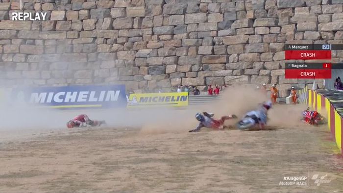 Ketika balapan tersisa 6 putaran lagi, pembalap Italia itu terlibat insiden dengan Alex Marquez.