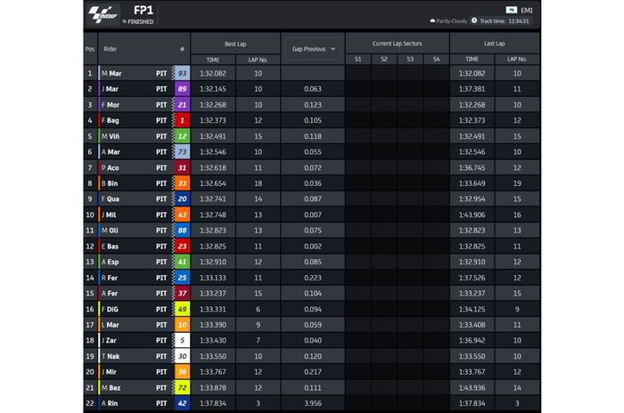 HASIL FP1 MOTOGP EMILIA ROMAGNA 2024
