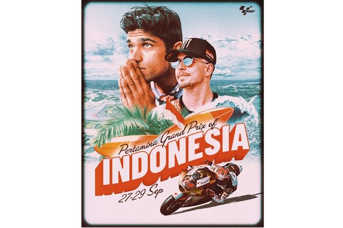 MOTOR Plus-online.com - Poster MotoGP Mandalika 2024 bikin pertanyaan fans balap.