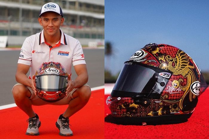 Mario Aji perkenalkan helm Arai RX-7X FIM dengan grafis yang nice banget.