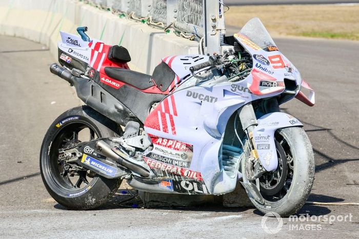 Maklum saja, motor Ducati Desmosdici GP23 miliknya terbakar ketika tengah bertarung untuk podium.