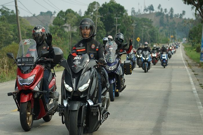 MOTOR Plus-Online.com - Kompaknya pengguna skutik MAXi Yamaha NMAX, Aerox, LEXi, dan XMAX melakukan keseruan di Lampung.
