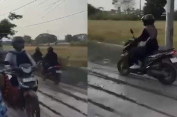 MOTOR Plus-online.com - Kejadian lagi para pemotor nekat melindas jalan baru dicor sampai hancur di Cirebon, Jawa Barat.