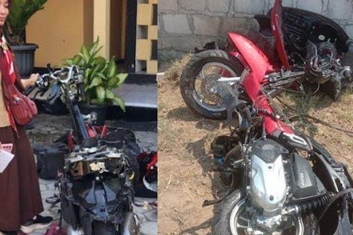 MOTOR Plus - online.com Honda Scoopy milik guru SMK rusak parah dan terbelah usai tertemper Kereta Api (KA) Sancaka di Kabupaten Sragen.
