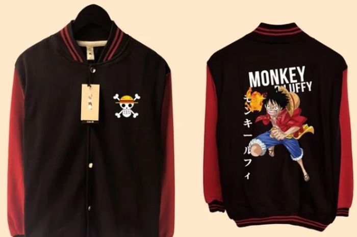 Salah satunya jaket varsity dengan model atau gambar karakter One Piece.