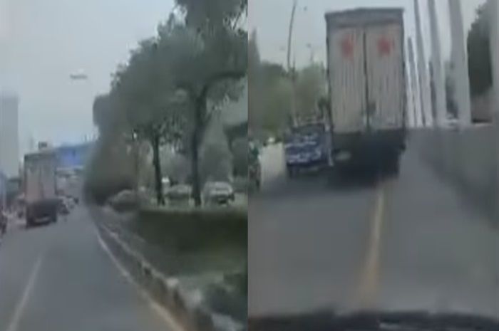 Dalam video, terlihat truk melewati turunan dan menyalip mobil yang merekam kejadian.