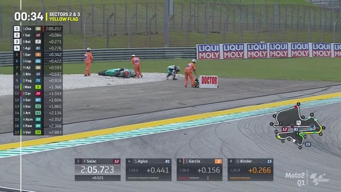 Hingga Q1 berakhir, Somkiat Chantra, Filip Salac (ELF Marc VDS Racing Team), Barry Baltus (RW Racing GP), dan Senna Agius (Liqui Moly Husqvarna Intact GP) berhak lanjut ke Q2.