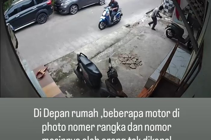 "Di depan rumah, beberapa motor di photo nomor rangka dan nomor mesinnya oleh orang tak dikenal. Harap berhati-hati, karena saya tidak tau modus kejahatan apa yang mereka maksudkan," tulis keterangan dalam video tersebut.