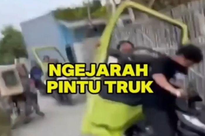 MOTOR Plus - online.com Beredar di media sosial warga bawa pintu truk naik motor usai merusak truk yang terkena kerusuhan di Tangerang.