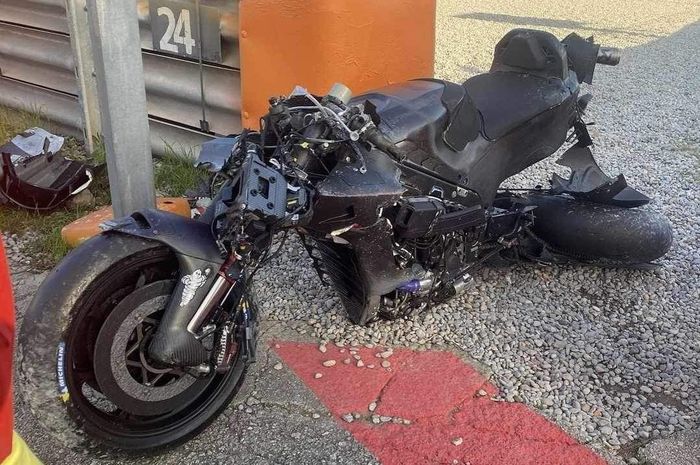 Motor KTM RC16 yang ia gunakan hancur lebur usai alami crash pada sesi tes MotoGP Barcelona.