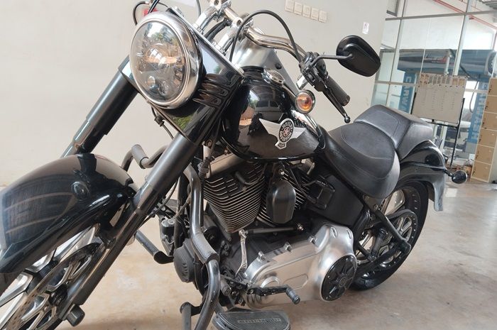 Motor yang dilelang berupa Harley-Davidson FLSTFB tahun 2010 warna hitam dengan nomor polisi DK 4413 BO.
