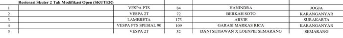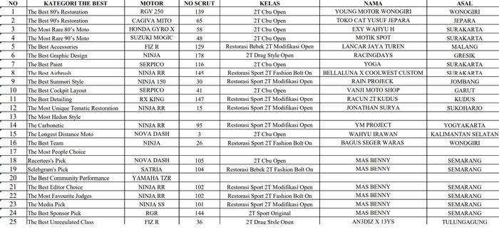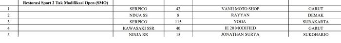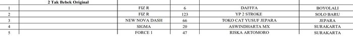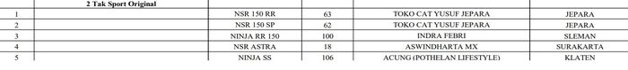 Berikut para pemenang di kelas 2 Tak Sport Original:
