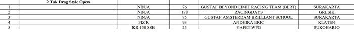 Berikut para pemenang di kelas 2 Tak Drag Style Open:
