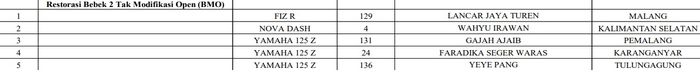Berikut para pemenang di kelas 2 Tak CBU Open: