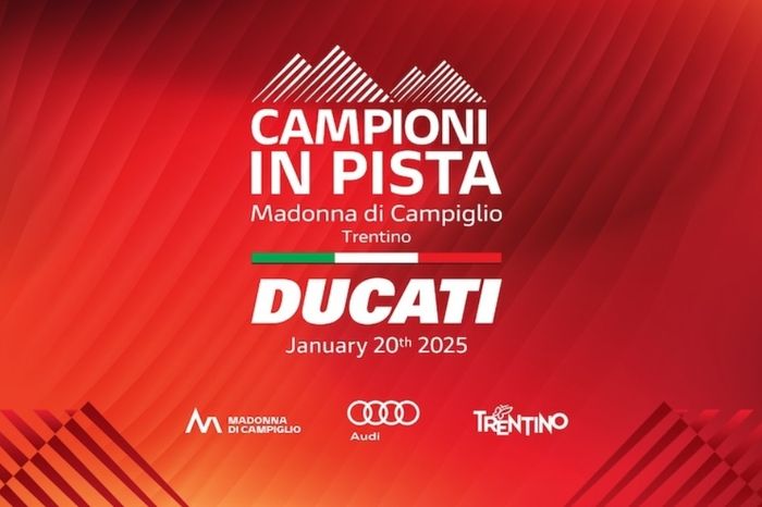 Mulai jam 17.00, tim Ducati Lenovo akan tampil di depan umum di Piazza Sissi di Madonna di Campiglio.