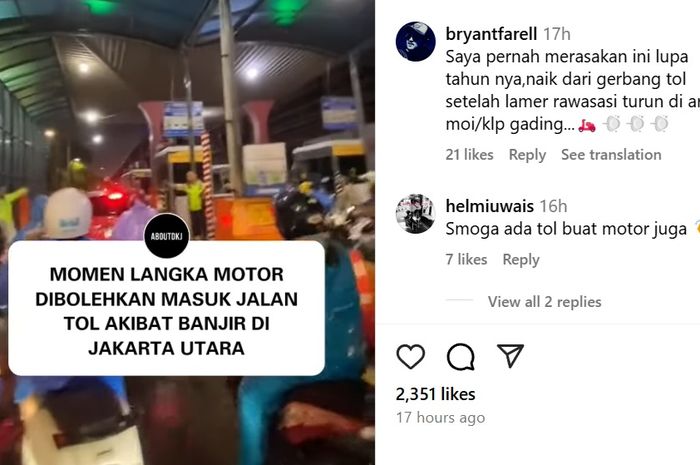 "Seru juga ya. Kapan lagi motor bisa lewat tol. Ada yang pernah ngalamin?," tulis keterangan video, Kamis (30/1/2025).