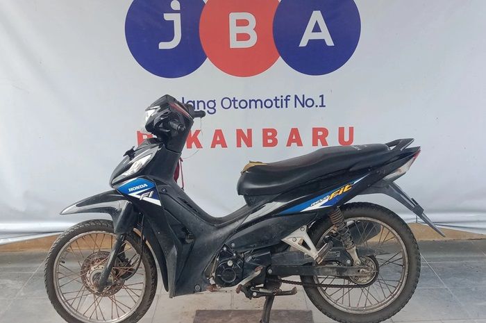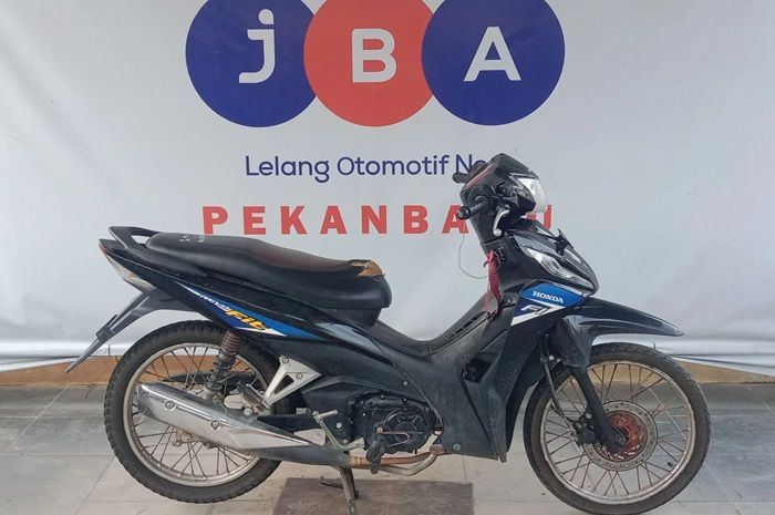Dari beberapa motor yang dilelang, salah satunya Honda Revo tahun 2024 warna hitam dengan striping biru.