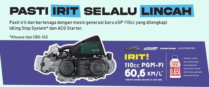 Lebih irit bensin jika dibandingkan dengan Honda BeAT di Indonesia, dengan konsumsi 60,6 km/liter.