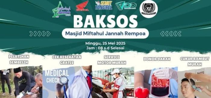 Selain pelatihan, DKM masjid Miftahul Jannah mengadakan baksos yaitu: