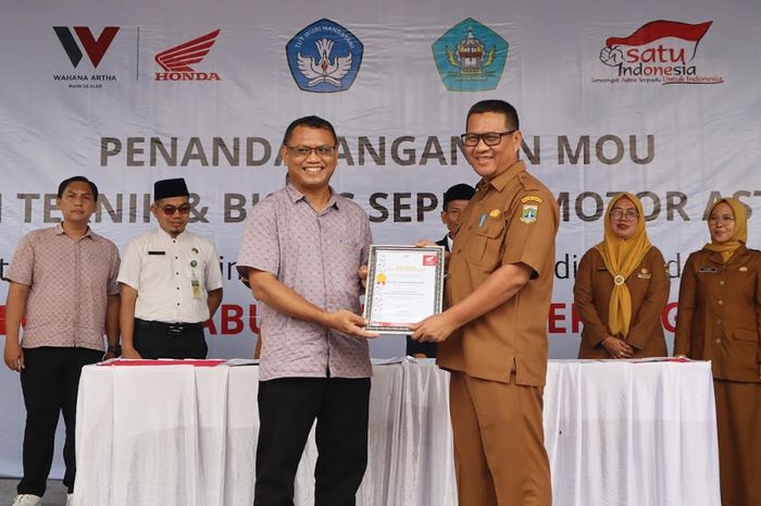 Acara peresmian SMK TUK ini ditandai dengan prosesi pengguntingan pita, penandatanganan MoU kerja sama, serta penyerahan simbolis satu unit sepeda motor Honda sebagai alat praktik untuk mendukung proses pembelajaran di sekolah.