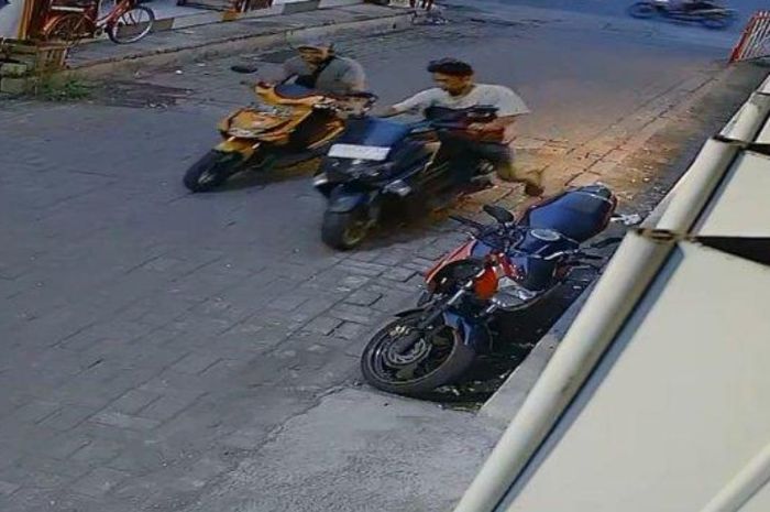 Aksi pencurian motor maxi Yamaha itu sempat terekam CCTV, aksi pelaku kelihatan jelas.