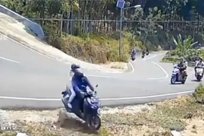 Selain di Bromo, insiden rem blong yang dialami motor matic terjadi di jalur Cangar-Pacet.