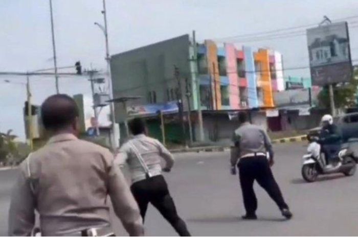 Aksi menegangkan dari satu persatu anggota terlihat ketika mencoba menangkap pengendara motor.