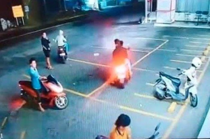 Berdasarkan rekaman CCTV, para pelaku tiba di lokasi menggunakan tiga motor, Yamaha NMAX merah, Honda PCX merah, dan Honda Beat hitam.
