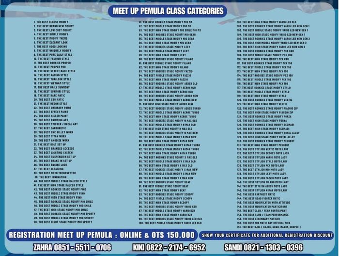 Tercatat ada 156 motor modifikasi yang memeriahkan acara ini.