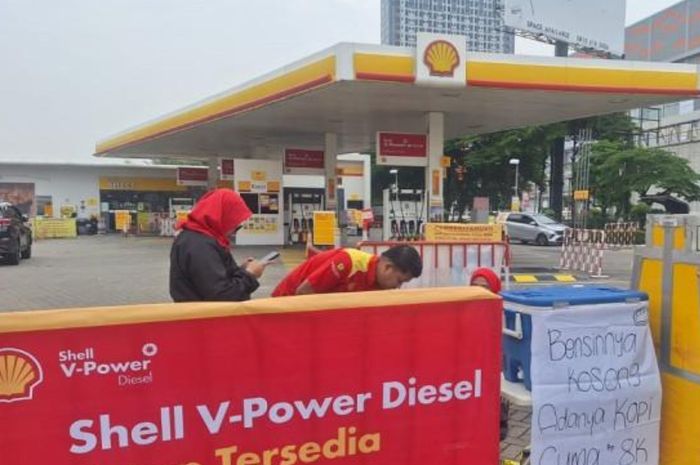 MOTOR Plus-online.com - Miris imbas BBM Shell kosong, pegawai jualan kopi dan makanan ringan di depan SPBU.