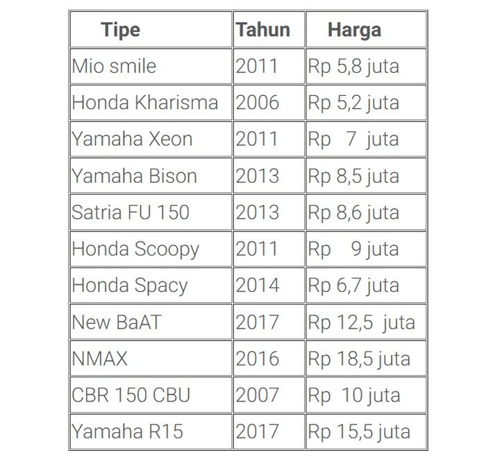 Daftar motor bekas harga mulai Rp 5-18 jutaan: