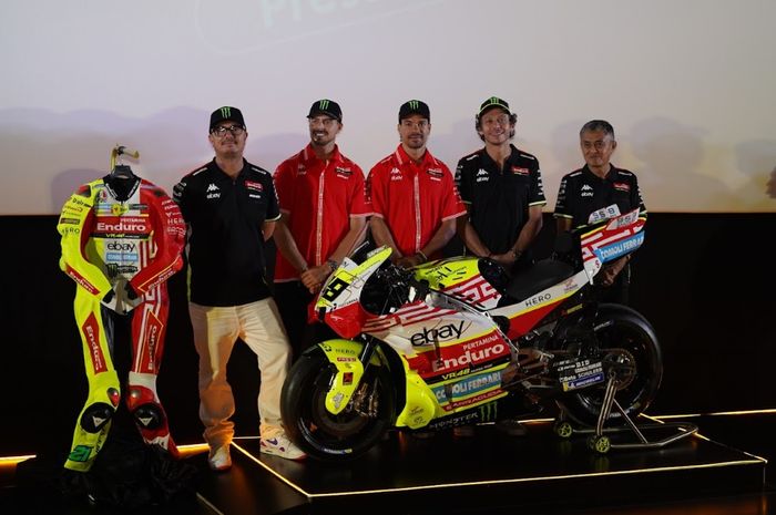 MOTOR Plus-online.com - Valentino Rossi jadi saksi peluncuran livery khusus Pertamina Enduro VR46 Racing Team.