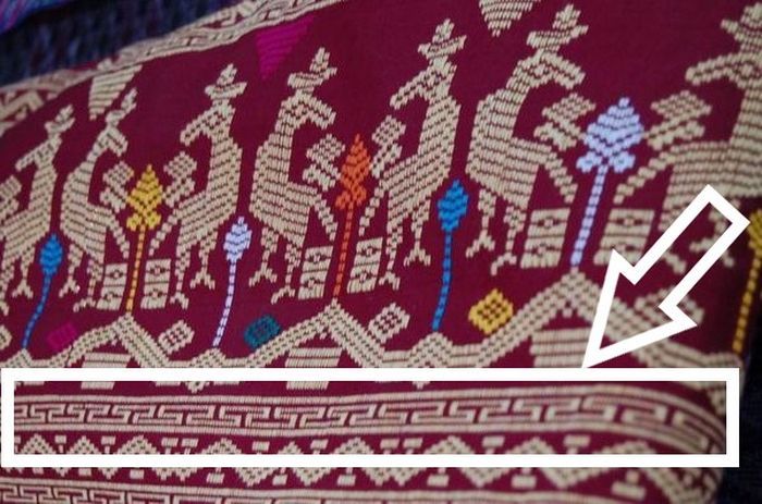 Motif tersebut biasanya digunakan untuk garis tepi salah satu kain tenun khas suku Sasak.
