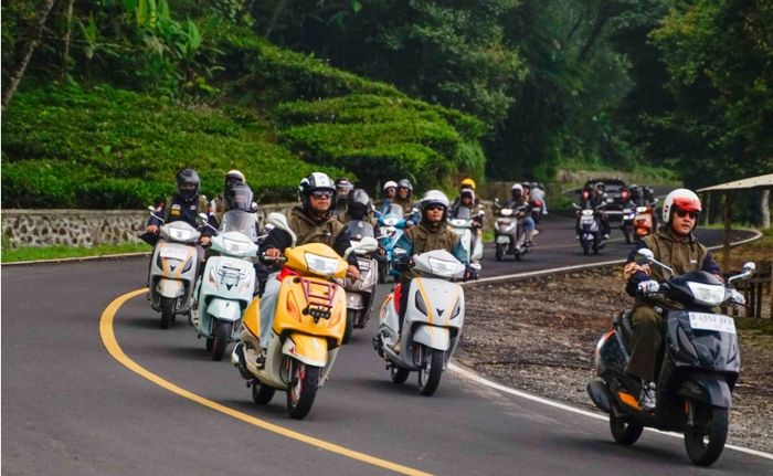 Berangkat dari dealer TVS Bandung, puluhan motor Callisto melaju menuju kawasan Ciwidey, dengan destinasi akhir di Rengganis Camp Site.