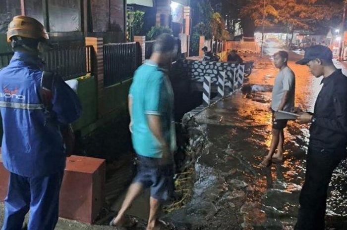 Sehingga menyebabkan banjir berupa air meluap ke jalan setinggi sekitar 15 centimeter dengan arus yang deras.