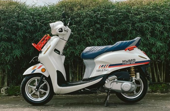 Seperti milik salah satu pemuda asal Bandung bernama Sansan yang menamai Grand Filano Hybrid-nya, ”Kumo” dan dimodifikasi asal Japanese Urban Transporter tahun 80’an dengan beberapa sentuhan modifikasi tipis yang memadukan warna dasar putih dengan warna merah di bagian rak depan dan biru untuk jok tebal dengan patch JDM khas skutik Jepang serta beberapa grafis yang menyebutkan identitas skutik ini, yaitu Kumo dan stiker decal tulisan Jepang untuk mempertegas identitasnya.