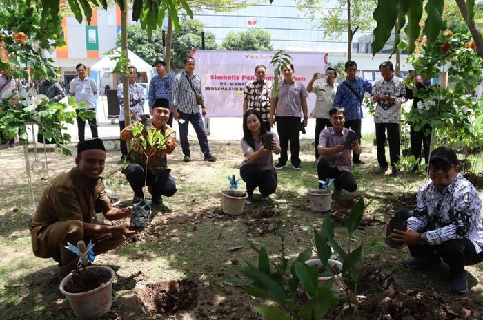 Sebanyak 2.000 tanaman diserahkan kepada 56 SMK binaan WMS, terdiri dari bibit pohon sirsak, cengkeh, jambu, matoa, dan trembesi, yang dikenal memiliki kemampuan dalam mengikat karbon dioksida (CO₂).