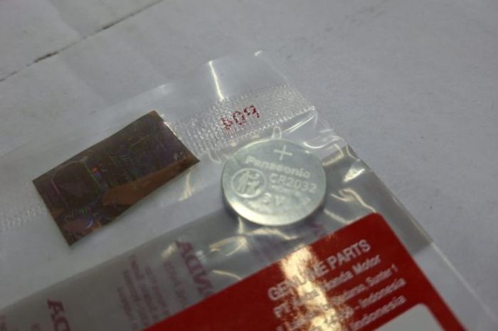 "Baterai remote keyless pakainya Panasonic CR2032 3V," sahut Wahyu Endro Utomo, Kepala Bengkel AHASS Margo Mulyo Megah Pasar Minggu.