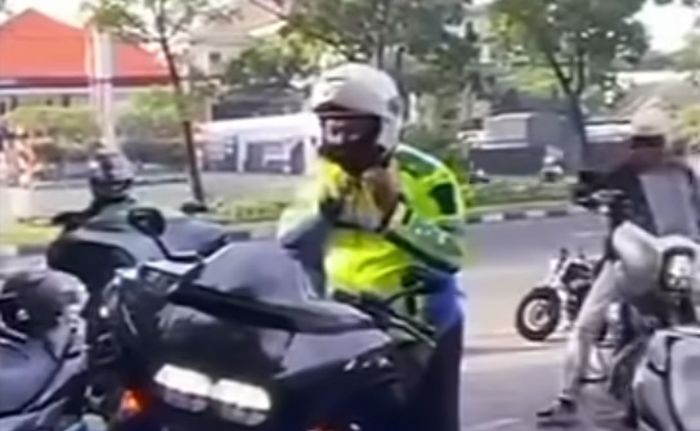 Pengendara tersebut viral karena menggunakan jaket Polisi Lalu Lintas (Polantas).