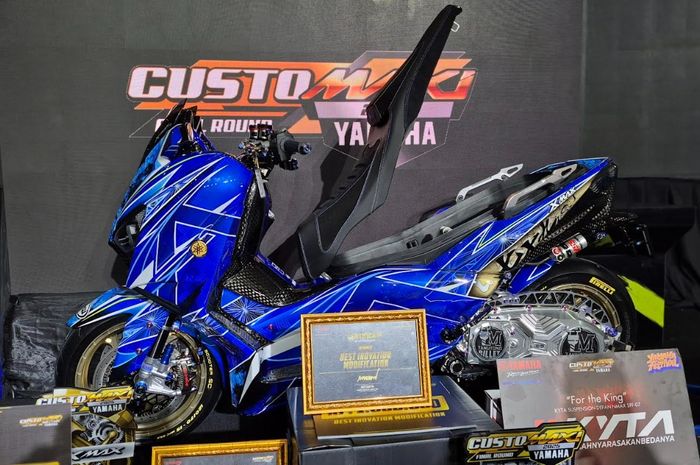 MOTOR Plus-online.com - Biaya modifikasinya bikin geleng kepala, Yamaha XMAX berlogo emas milik anak Medan ditetapkan sebagai The King of MAXI tahun ini.