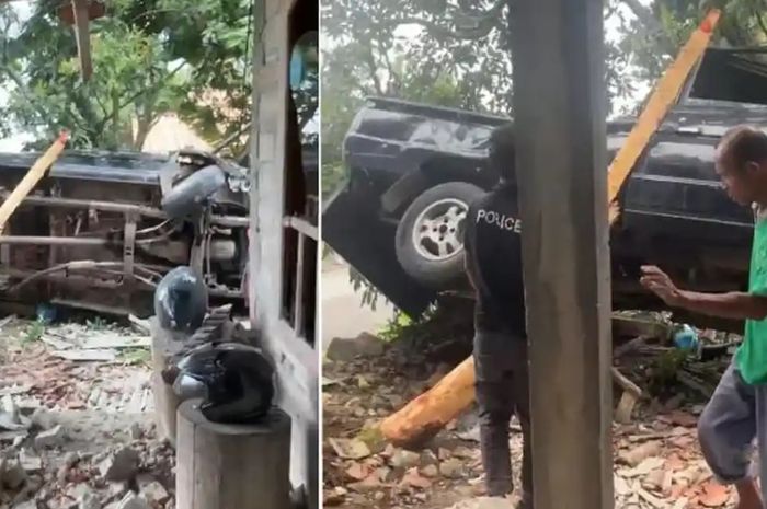 MOTOR Plus-online.com - Kecelakaan terjadi di Ngawi, Jawa Timur saat Toyota Kijang menghantam 4 motor dan satu rumah.