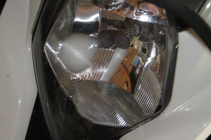 Salah satunya adalah pada bagian mika lampu depan motor yang meleleh.