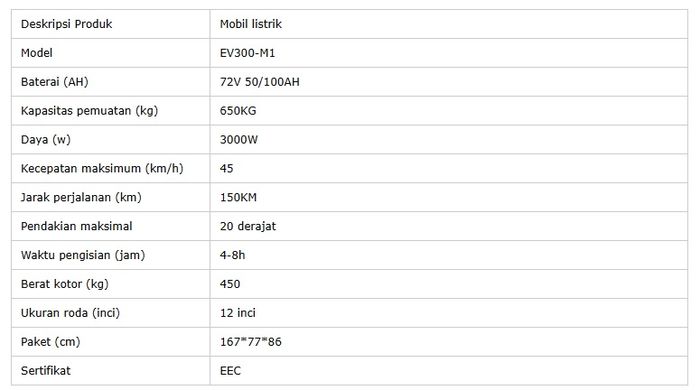 Mobil yang menggunakan baterai Lithium ini diproduksi di Hebei, Cina.