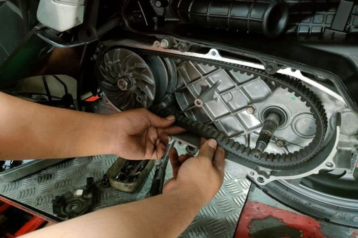 "Paling utama yang membuat v-belt cepat melar maupun retak adalah bobot yang dibawa motor berlebihan," ucap Harry Anggi mekanik bengkel R59 Racing di Jalan Dewi Sartika No.32D, Ciputat, Tangerang Selatan, melansir GridOto.com.