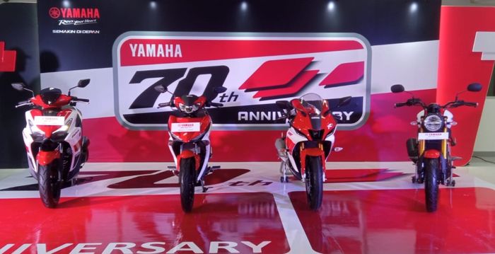 Yamaha memasarkan rilisan khusus 70th Anniversary livery MX King 150 seharga Rp 28.325.000*, R15M Connected/ABS Rp 46.600.000*, Aerox Alpha Turbo Rp 39.950.000* dan XSR 155 Rp 39.665.000*.