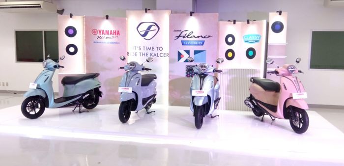 Yamaha memasarkan warna terbaru dari Grand Filano Hybrid varian Hybrid Lux, Royal Iron dengan harga Rp 28.795.000 & untuk varian Hybrid Neo, Prime Gray, Greenish Gray, Pink Mauve, dan Essential White dipasarkan dengan harga Rp 28.315.000, harga On The Road Jakarta.