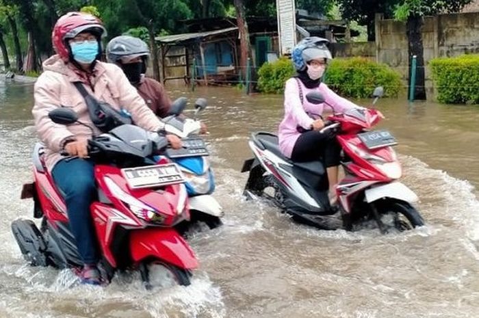 Buat yang sehari-hari aktivitas pakai motor matic, sebaiknya jangan asal menerobos banjir.