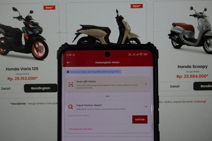 Bagi konsumen yang telah memiliki motor Honda, proses pendaftaran dapat dilakukan melalui pemindaian QR Code atau dengan memasukkan nomor mesin secara langsung melalui perangkat smartphone.