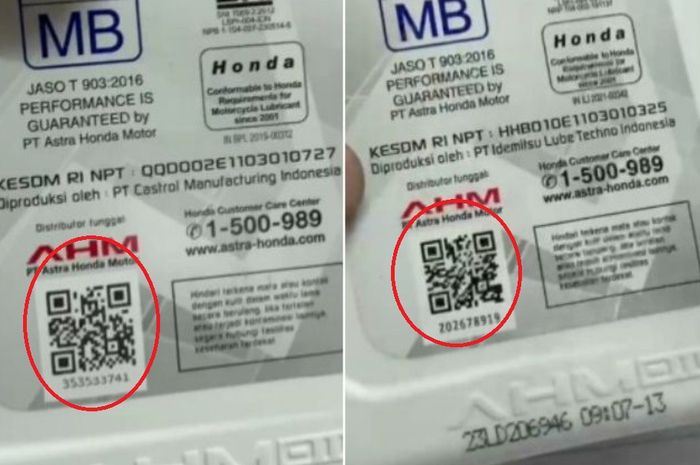 Barcode pada kemasan dibuat khusus untuk mengidentifikasi keaslian oli mesin.