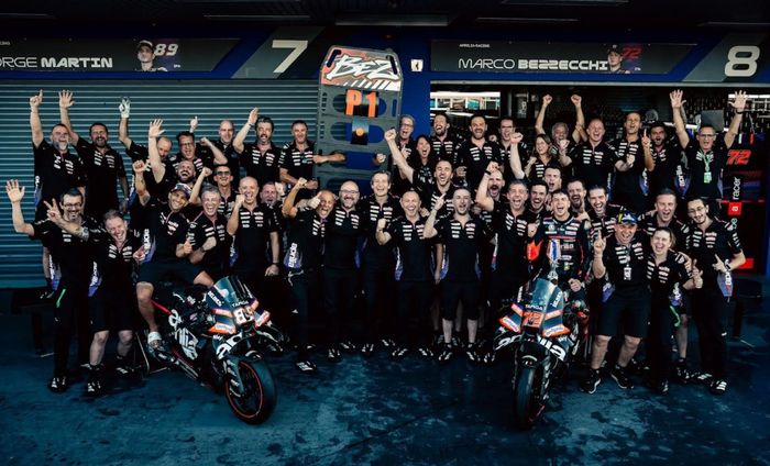 Empat motor Aprilia pun sukses menguasai lima besar dalam balapan ini yang menjadi pencapaian bersejarah bagi tim.
